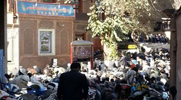 Other pictures posted online showed a large crowd, most of them men and many wearing white Islamic caps, standing outside the green mosque, apparently after the incident.