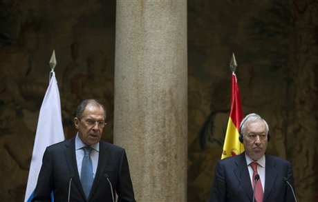 The Russian foreign minister, who left Madrid for a Paris meeting with US Secretary of State John Kerry after the conference, said Moscow would not allow bloodshed to erupt in Ukraine.