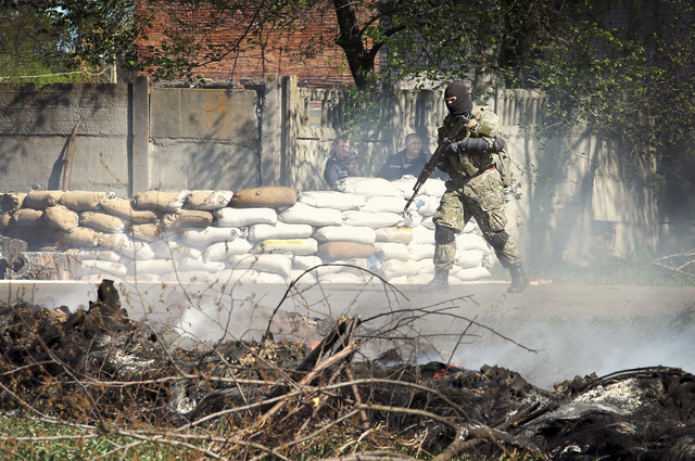 At the entrance to Slavyansk, several members of an OSCE observer mission were detained and taken to the rebel-held security services building, sparking immediate international condemnation.