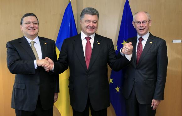 Ukrainian President Petro Poroshenko came to Brussels to sign a far-reaching trade and political cooperation agreement with the EU that has been at the heart of months of deadly violence and upheaval in his country, drawing an immediate threat of "grave consequences" from Russia.